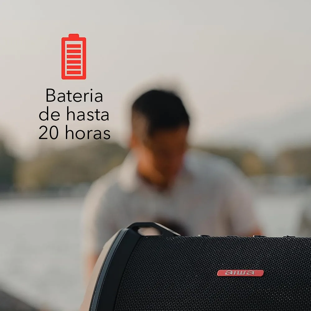 La bocina Aiwa Exos-3 ofrece un sonido estéreo increíble con graves profundos; agudos nítidos y medios equilibrados. Sin distorsiones, incluso a los más altos volúmenes.