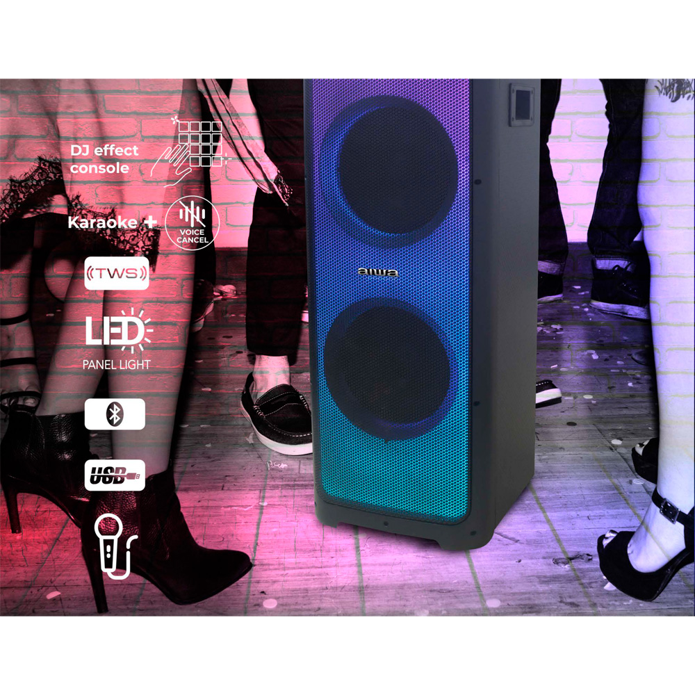 Arma la fiesta y amplifica tu música con doble potencia en sonido y calidad, ahora con tecnología TWS puedes escuchar con dos bocinas el mismo audio. Además si te gusta tocar guitarra, es tu oportunidad de brillar, tiene entrada Jack y función para grabar.