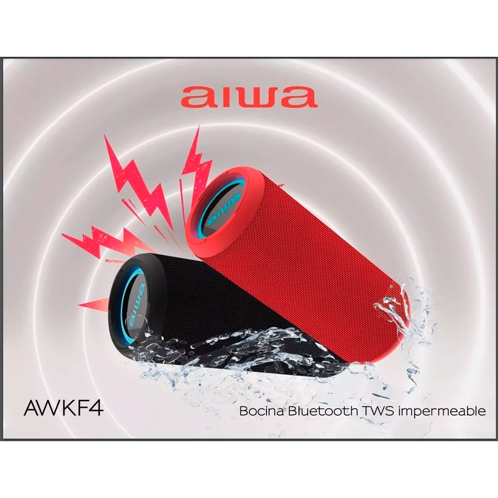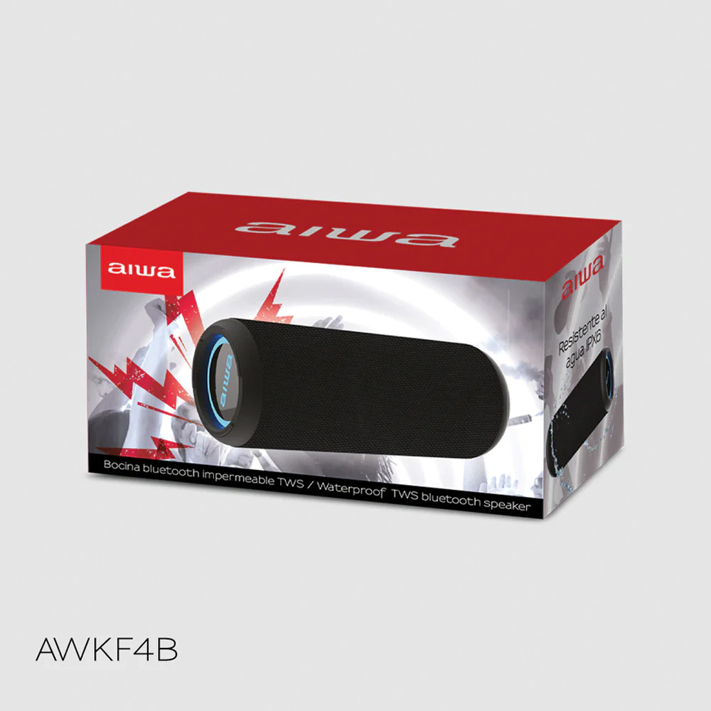 Bocina inalámbrica AWKF4 que es resistente al agua. Con tecnología True Wireless Stereo (TWS) puedes duplicar la potencia del sonido en tus fiestas. Llévalos a donde quieras, a la playa, a casa de amigos o con tu familia.