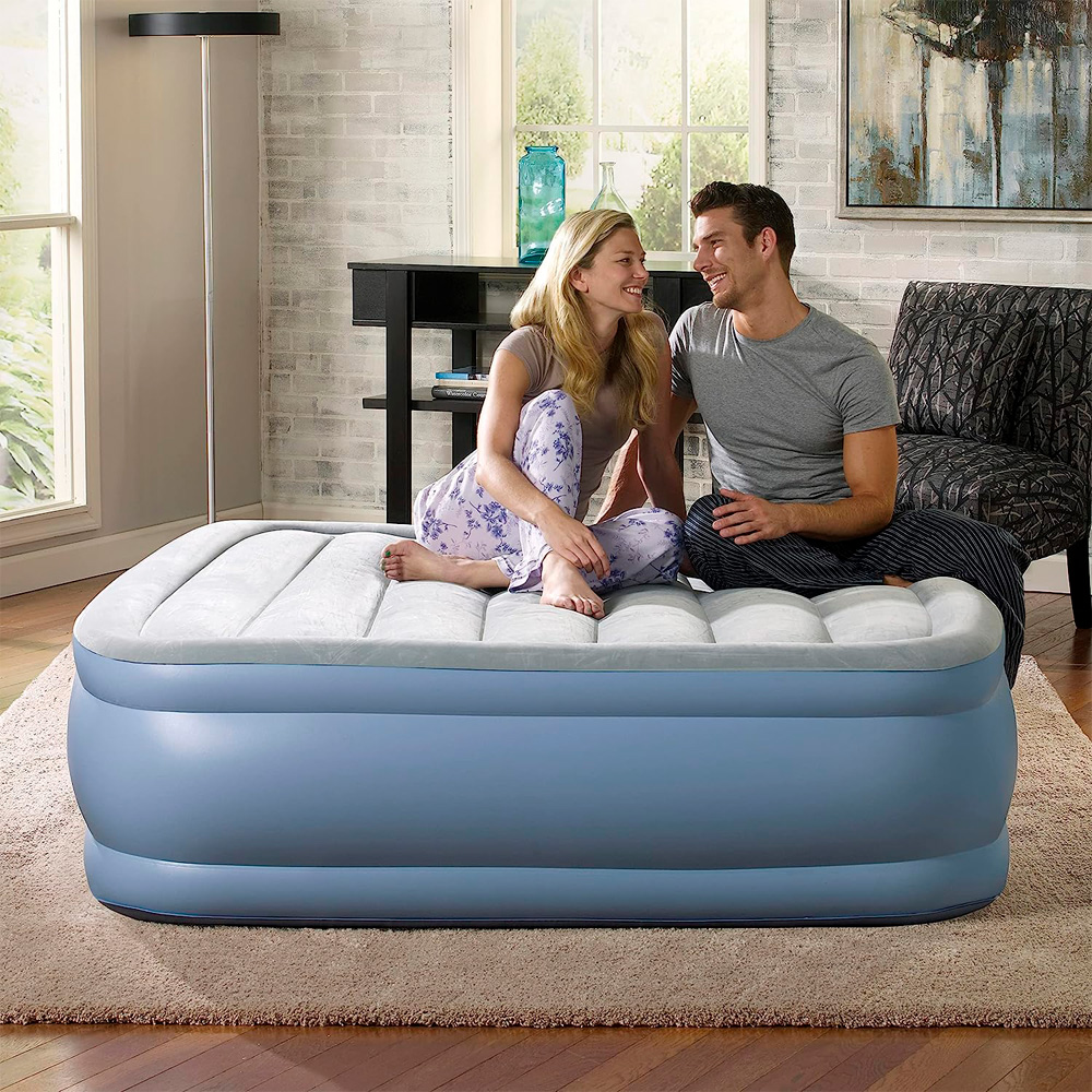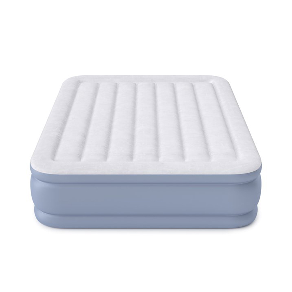 Incluye una bomba eléctrica para inflar y desinflar en cuestión de segundos. La superficie de terciopelo afelpado evita que las sábanas se resbalen y el resto del colchón está hecho de vinilo resistente a perforaciones. Incluye una bolsa de transporte de nailon y puede ser limpiado con agua.