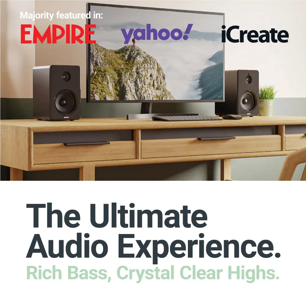 Con su configuración de dos altavoces y amplificadores integrados, los altavoces de estantería activos Majority D40 serán el complemento ideal para su experiencia de juegos, música o cine en casa. Los D40 vienen con una gama de opciones de conectividad que incluyen Bluetooth, USB, AUX, RCA y óptica para que pueda conectar y reproducir fácilmente su audio desde casi cualquier dispositivo.