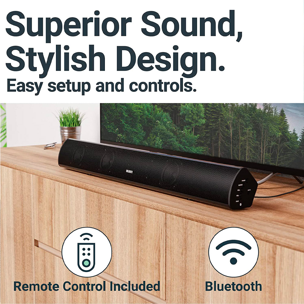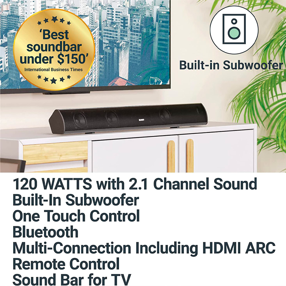 Disfrute de una experiencia de audio de alta calidad con la barra de sonido Bluetooth de 2.1 canales Teton. Conecte un cable HDMI ARC para disfrutar de la conveniencia de usar un solo control remoto para controlar la configuración de su televisor, su barra de sonido Teton y otros dispositivos compatibles con ARC. La nueva y mejorada conexión HDMI ARC crea una experiencia de audio como ninguna otra y da vida a sus películas y música.