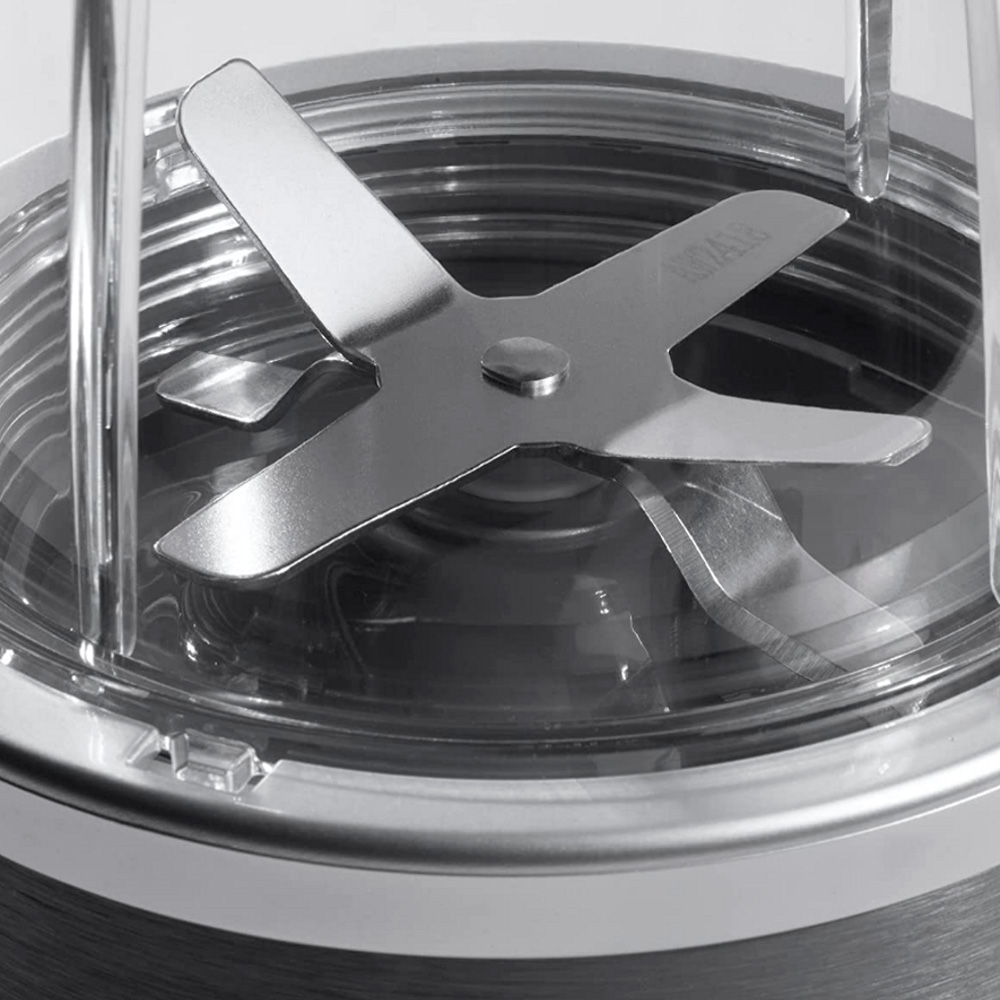 Prepare deliciosos batidos y bebidas congeladas en casa con esta licuadora. La hoja de acero inoxidable garantiza una mezcla suave y uniforme, mientras que el vaso de viaje incluido permite llevar los batidos a cualquier lugar de forma segura y sin derrames.